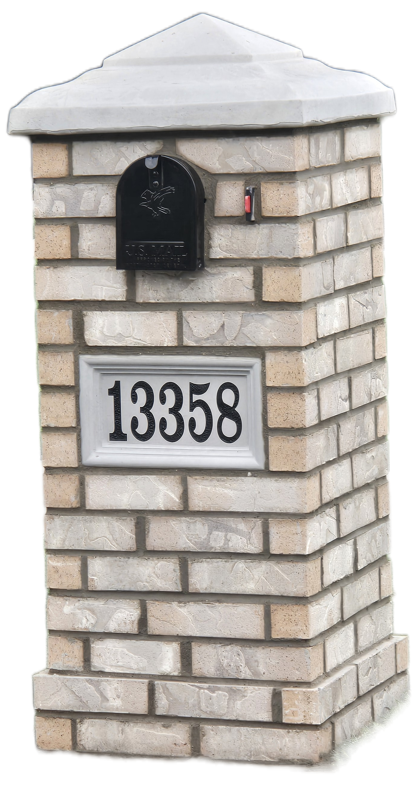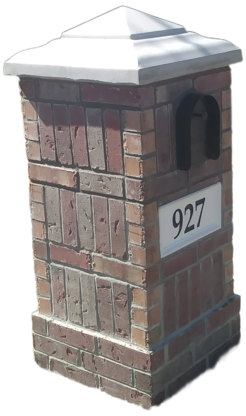 Bookable Service for Weber, Davis, Box Elder & Morgan Counties only 50% Deposit on base cost of $1,750 is required to schedule Install Date. The remaining balance for this service and add-ons is due at the time of service. Brick Mailbox Standard Design consists of your choice of King or Modular size brick with a standard horizontal brick configuration with a maximum of two (2) Quoin Corners "Indent \ step in" or "protrude \ step out" on the brick design, and one (1) solider course or vertical brick course. (200 Brick Max). Comes with your choice from our collection of standard capacity USPS approved mailbox. A red outgoing mail alert slide flag and your choice of pillar cap or concrete cap. *Address Blocks ~ +$225 *Mortar Color ~ +$100